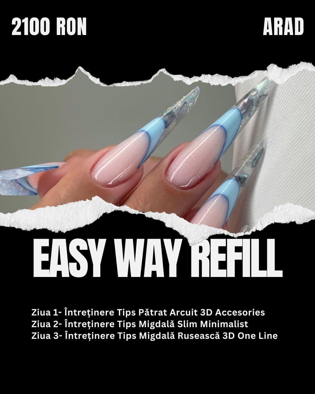 Migdală Slim este forma care cere precizie și echilibru. În acest curs lucrezi construcția completă pe șablon și întreținerea cu tipsuri reutilizabile, plus French Glass, pentru un rezultat elegant și rafinat.